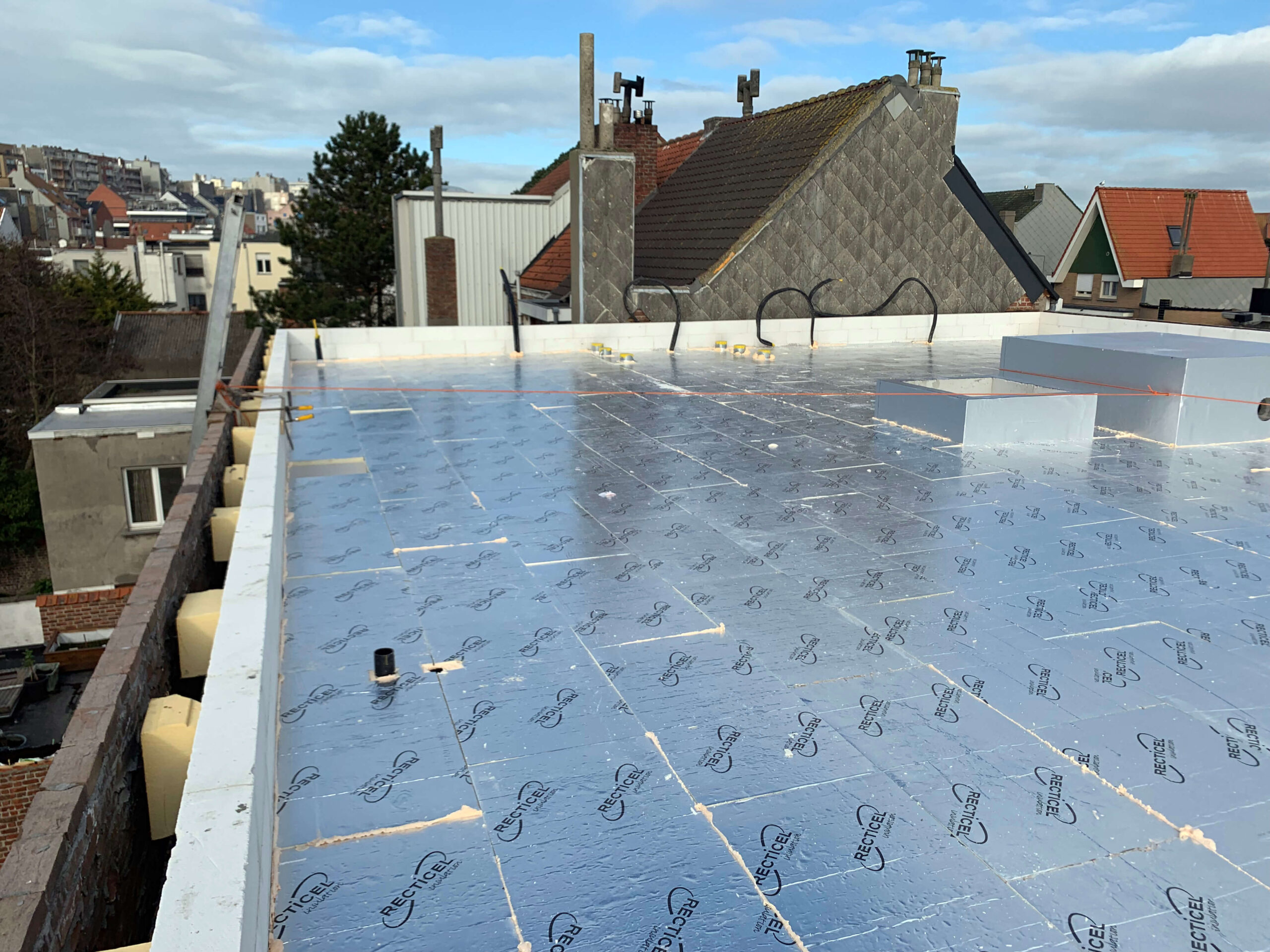 EPDM heeft heel wat voordelen tegenover oudere materialen zoals roofing: Met onze jarenlange ervaring – ondertussen al de tweede generatie – garanderen we een plat dak dat perfect aansluit, zodat je er geen omkijken meer naar hebt.